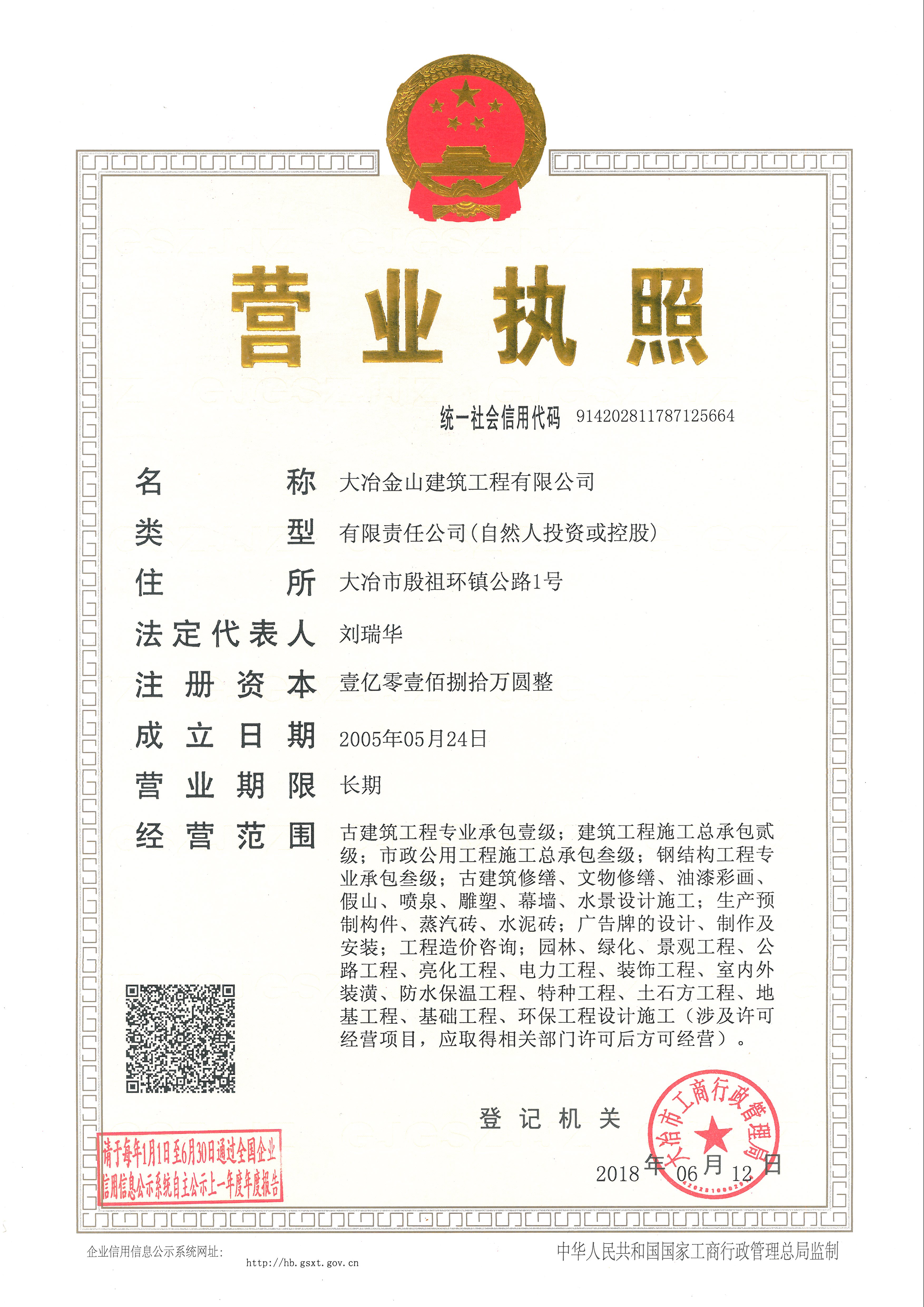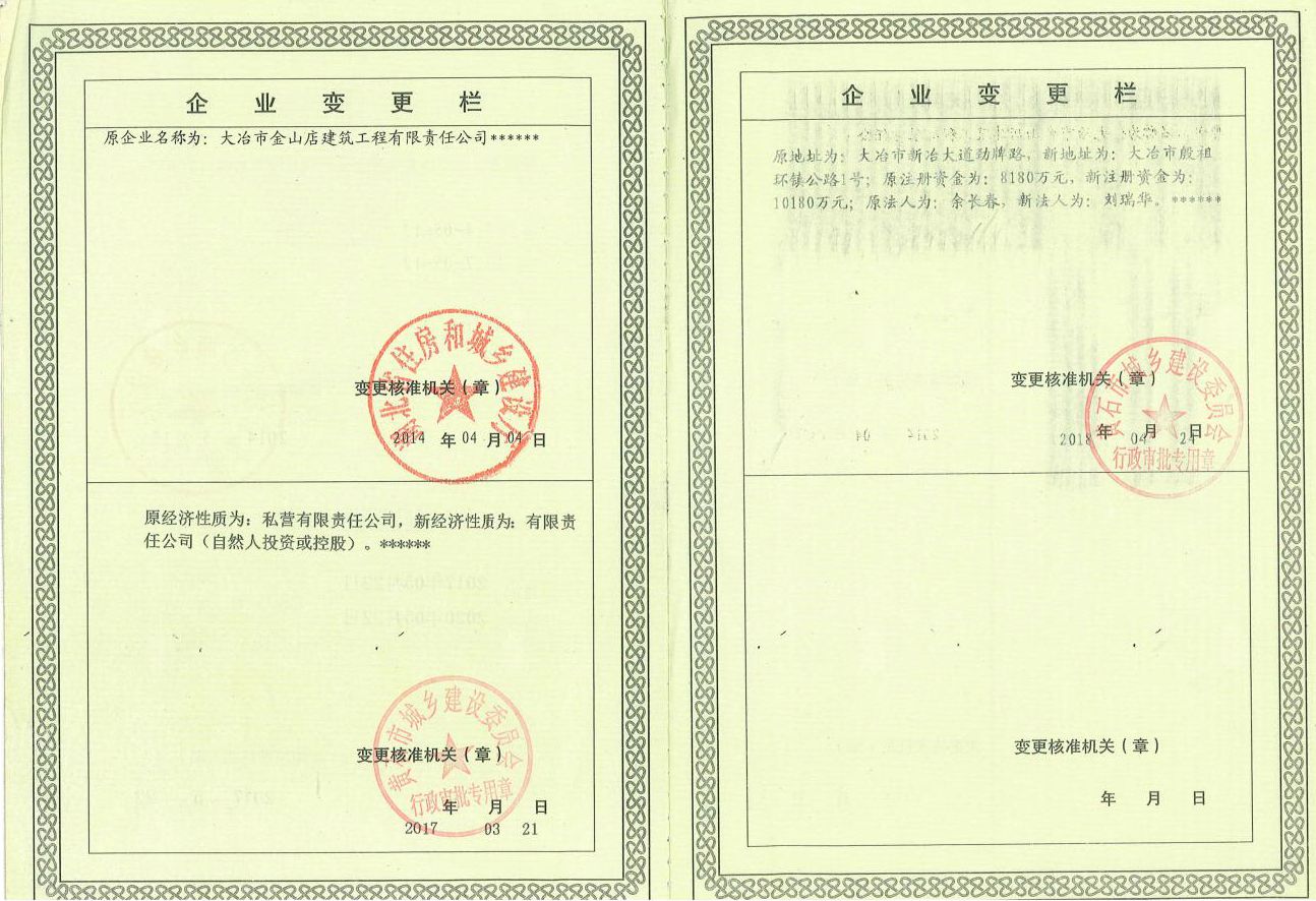 大冶金山建筑工程有限公司始建于1984年,屬鎮(zhèn)辦集體企業(yè)。1997年改制為大冶山建筑工程有限責(zé)任公司,屬股份制企業(yè)。2013年更名為大冶金山建筑工程有限公司,2018年3月公司資源重組,公司注冊(cè)資金達(dá)到10180.00萬元,公司法定代表人為劉瑞華。公司具有古建筑工程專業(yè)承包壹級(jí)、建筑工程施工總承包貳級(jí)、市政工程總承包叁級(jí)、鋼結(jié)構(gòu)工程專業(yè)承包叁級(jí)資質(zhì)。